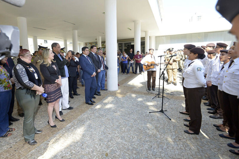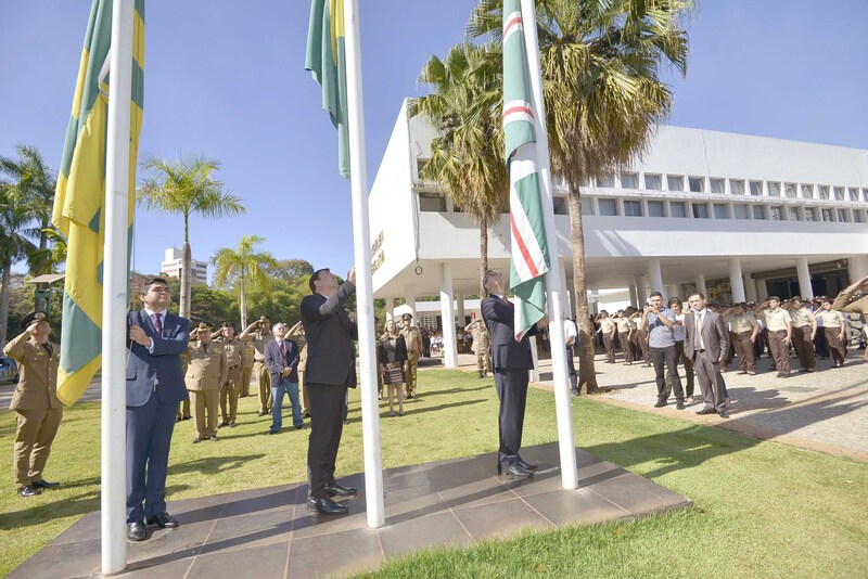 Presidente José Vitti com deputados e demais autoridades no hasteamento da Bandeira Y. Maeda