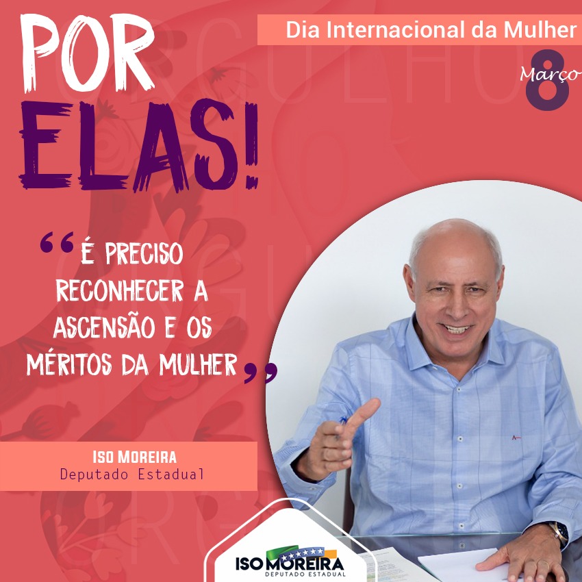 O Dia Internacional da Mulher, comemorado em 8 de março no Brasil e em diversos países do mundo, é uma data sempre lembrada na agenda do deputado Iso Moreira (DEM), nesse ano, não está sendo diferente. Por meio da imprensa e das redes sociais, o parlamentar tem parabenizado as mulheres e dito que é preciso reconhecer o importante papel exercido por elas na construção de uma sociedade plural, igualitária e desenvolvida.