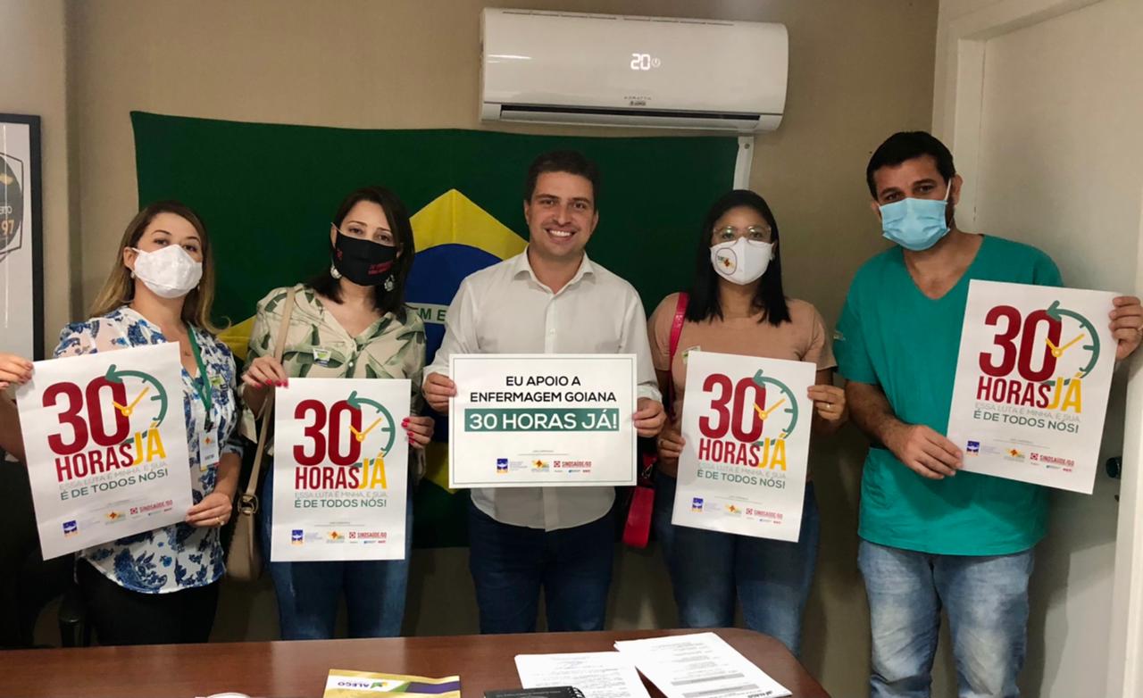 O deputado estadual Delegado Humberto Teófilo (PSL) recebeu nesta quinta-feira, 04, em seu gabinete, integrantes do Sindicato dos Enfermeiros do Estado de Goiás. Em pauta, a discussão do limite de 30 horas de jornada semanal para enfermeiros, técnicos de enfermagem e auxiliares de enfermagem do Estado.
