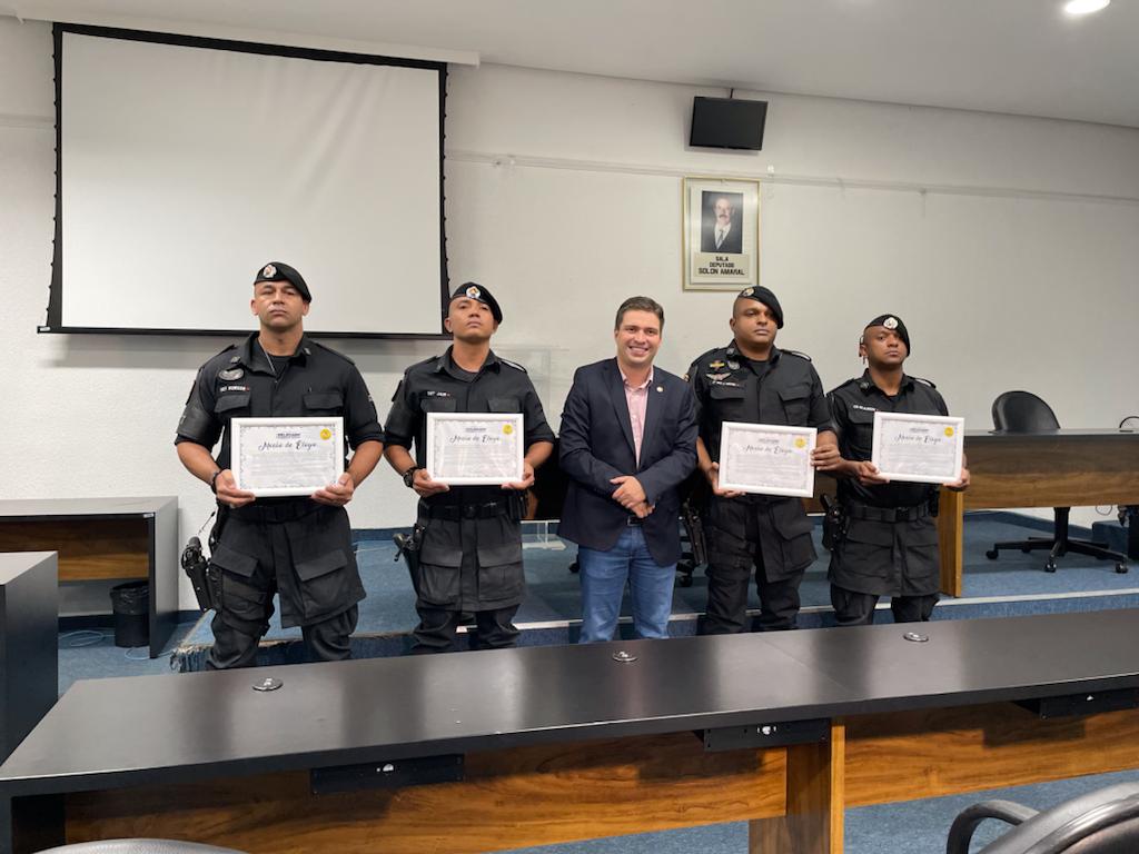 Na manhã desta quarta-feira, 10, o deputado Delegado Humberto Teófilo prestou homenagem a quatro policiais da cidade de Pirenópolis, por meio de uma Moção de Elogio nesta Casa de Leis.