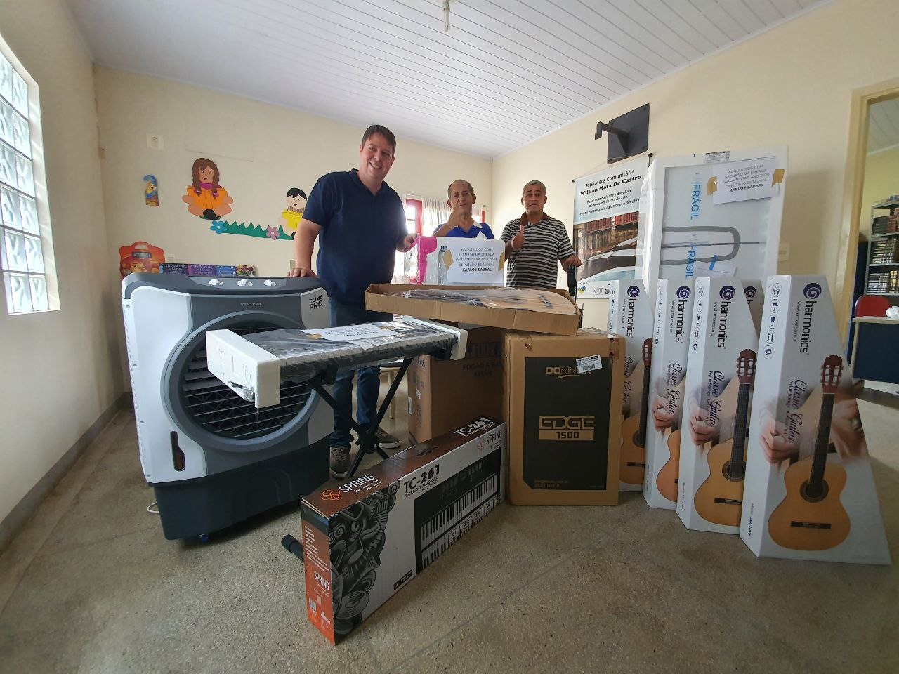 Na oportunidade, o deputado, juntamente com o presidente do Condec, Mário Neto Batista e o vice-presidente, Regivaldo Baiano, conferiram de perto os equipamentos que agora passam a beneficiar a entidade. Com o valor, foram adquiridos: climatizador, refrigerador, forno micro-ondas, fogão, bebedouro, cadeiras escolares, violões, caixa de som, teclado musical, dentre outros, contribuem com o projeto da unidade educacional de transformar o local em um ambiente melhor para ensinar e aprender.