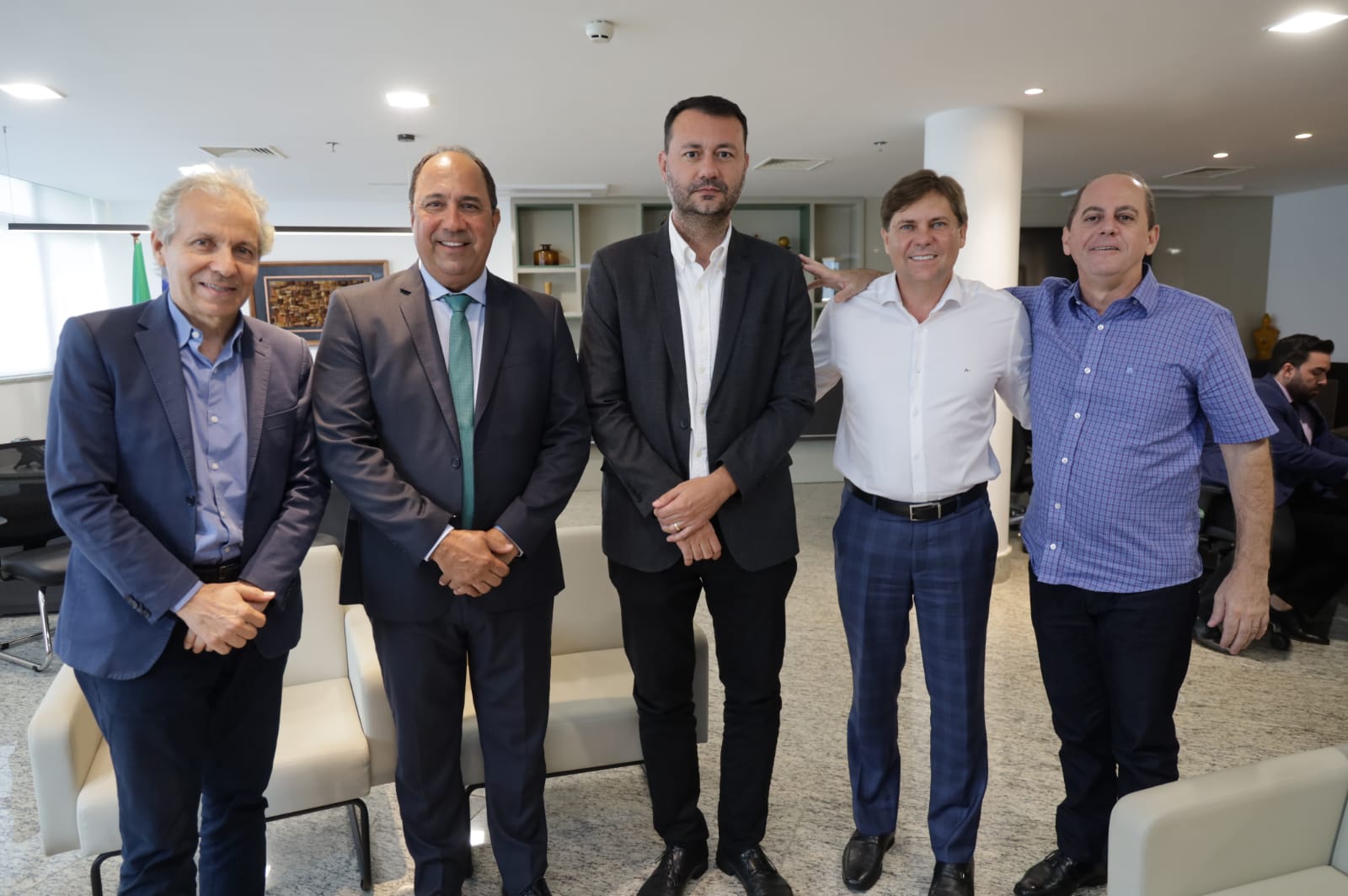 O deputado Lineu Olimpio (MDB), reuniu-se com o presidente da Goinfra (Agência Goiana de Infraestrutura e Transporte), Lucas Vissotto, o presidente da Assembleia Legislativa de Goiás, Bruno Peixoto, o diretor de planejamento da Goinfra, Riumar dos Santos, o assessor da presidência da Goinfra, Olivar Júnior, e o deputado estadual Amilton Filho.