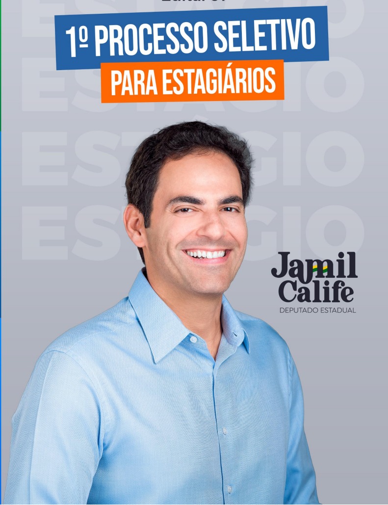 O deputado estadual Jamil Calife (Progressistas) publicou o Edital de Abertura do Processo Seletivo Simplificado Público para Estagiários nº 001/2023 visando selecionar estudantes de nível superior para estagiarem em seu gabinete na Assembleia Legislativa do Estado de Goiás com remuneração de R$ 1.055,00 (mil e cinquenta e cinco reais), por 20 horas semanais.