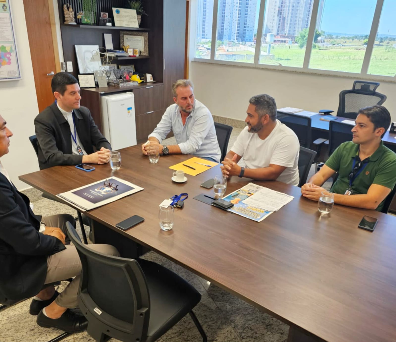 O deputado estadual Julio Pina (Solidariedade) recebeu, nesta quinta-feira, 25, a visita do diretor da Faculdade Católica de Anápolis, padre Fábio Barbosa, acompanhado pelo também diretor da instituição, Dhiego Conrado, e pelo prefeito municipal de Leopoldo de Bulhões, João Alecio Mendes.