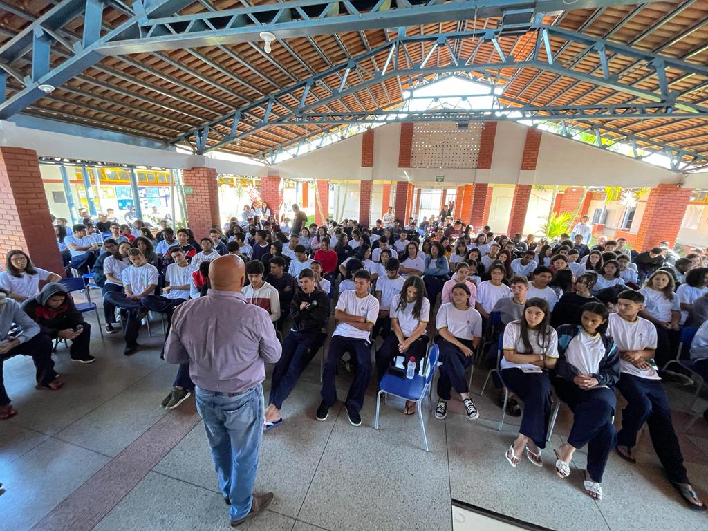 O papel do Legislativo na consolidação da democracia. Esse foi o tema da palestra do deputado Paulo Cezar Martins (PL) proferida na manhã desta segunda-feira, 29, a alunos do Colégio Estadual Porfírio de Sousa França, em Senador Canedo. O convite para a palestra foi feito pelo professor Jesus Nazareno da Silva.