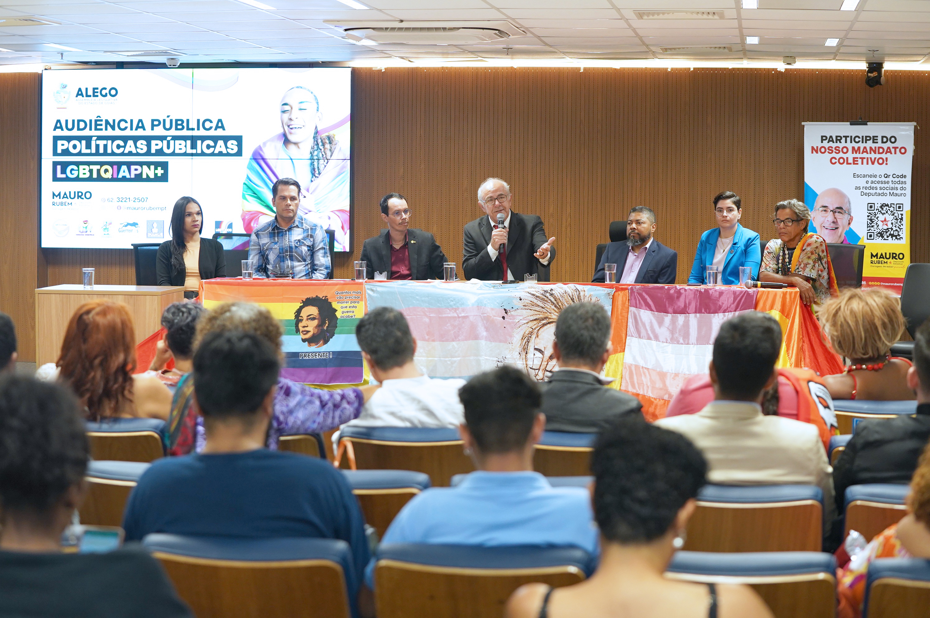 A audiência presidida pelo deputado Mauro Rubem (PT) reuniu representantes, personalidades, artistas, organizações e movimentos, que atuam pela pubicização das pautas inerentes às discussões sobre direitos, cidadania, políticas públicas, justiça e a violência que envolvem os(as) LGBTQIAPN+ em Goiás e no Brasil.