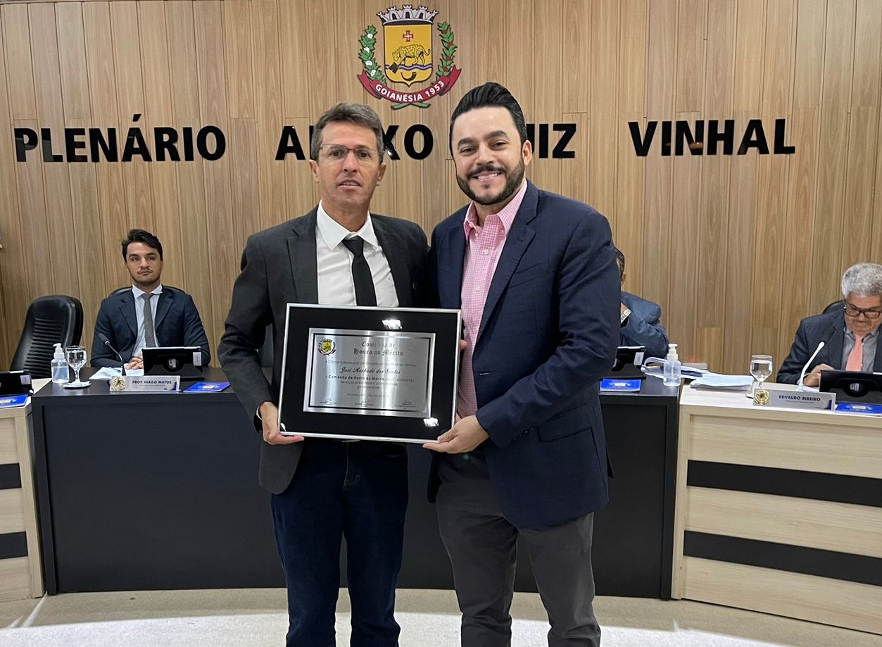O deputado José Machado (PSDB) recebeu a Comenda de Honra ao Mérito, em sessão realizada nesta sexta-feira, 6, na Câmara Municipal de Goianésia. A iniciativa foi do vereador Ismael do Gasparino, que apresentou o projeto de concessão da honraria, aprovado pelos demais vereadores.
