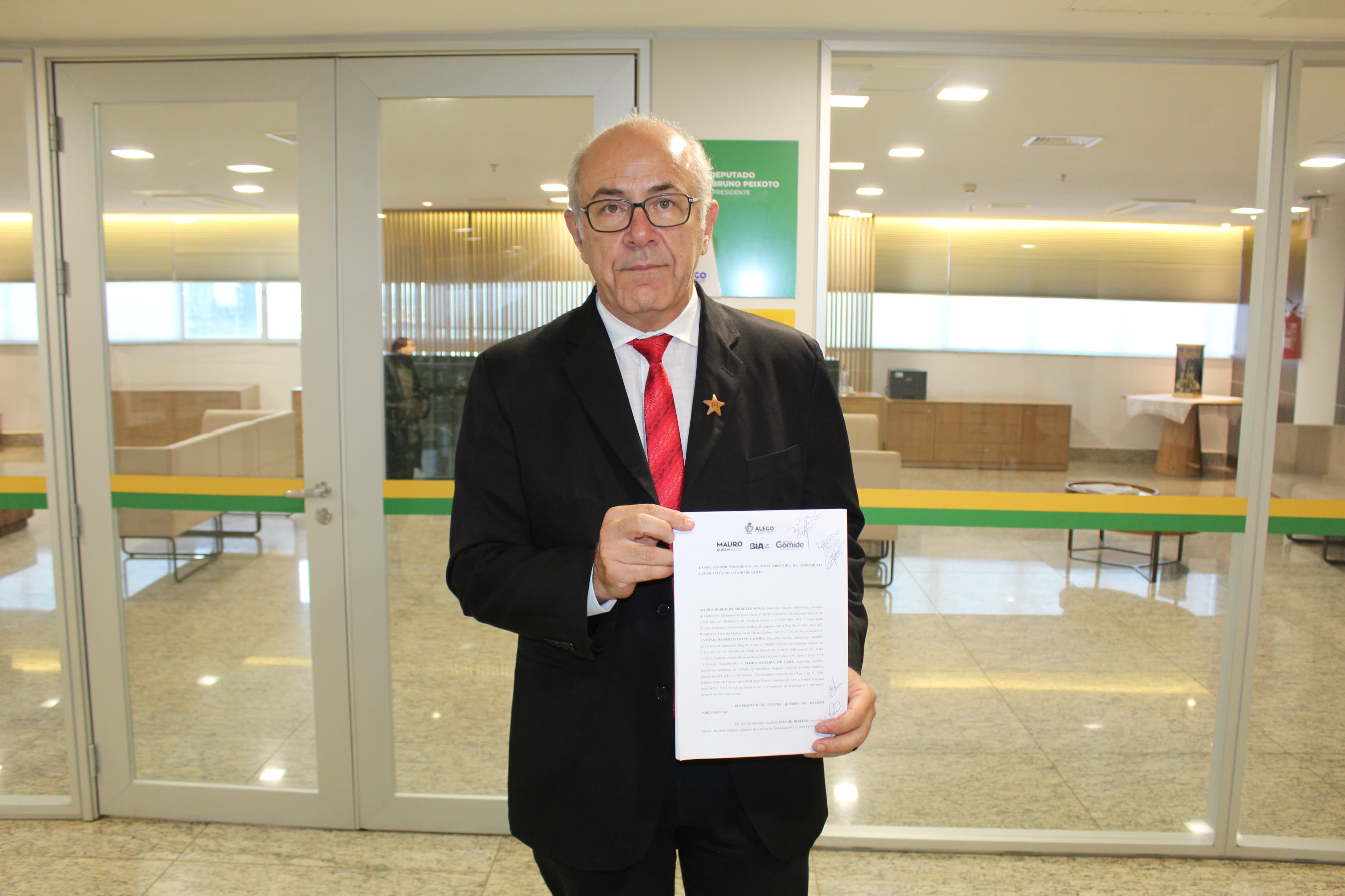 O líder da bancada do Partido dos Trabalhadores (PT), deputado Mauro Rubem, acompanhado dos deputados Antônio Gomide e Bia de Lima, ambos do PT, compareceram ao gabinete do presidente da Assembleia Legislativa de Goiás (Alego) Bruno Peixoto (UB), nesta quinta-feira, 19, às 14h30 e protocolaram, na presidência e na corregedoria do Parlamento goiano, uma representação por quebra de decoro parlamentar, em desfavor do deputado Amauri Ribeiro (UB).