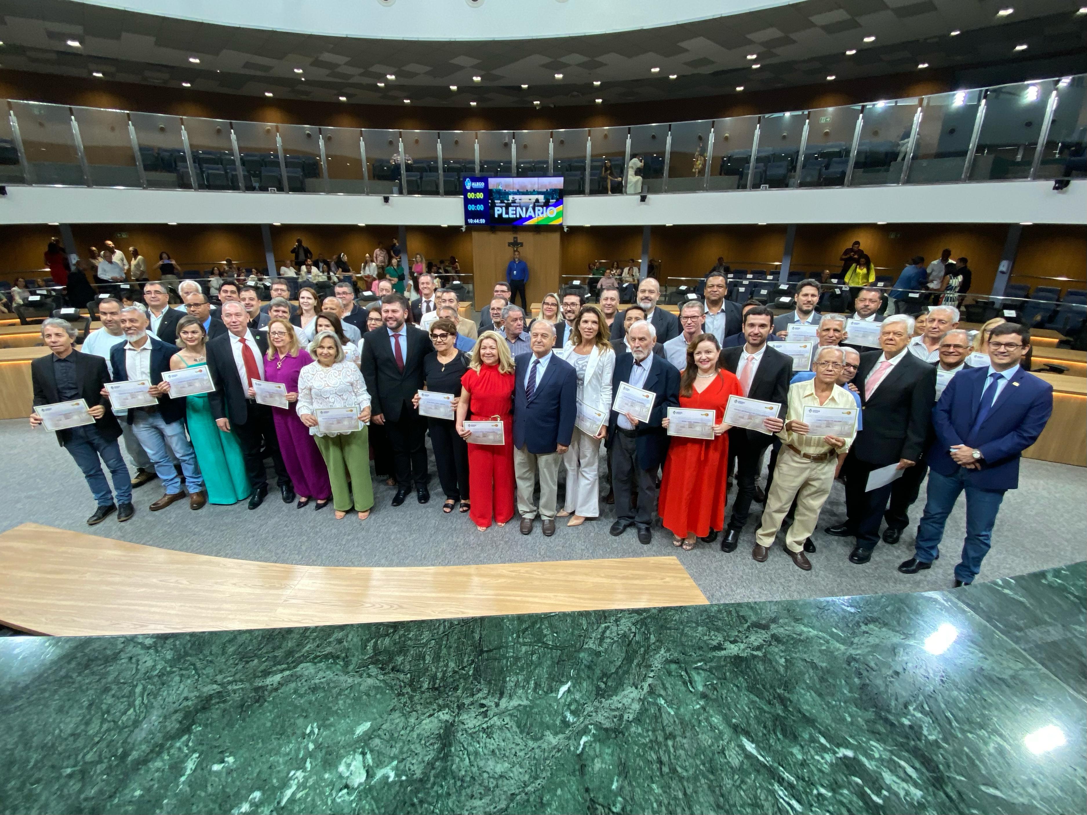 O deputado estadual Amilton Filho (MDB) presidiu sessão solene na Assembleia Legislativa de Goiás, realizada nesta segunda-feira, 11, para a entrega do Certificado do Mérito Legislativo em comemoração ao 20º aniversário da Agência Goiana de Defesa Agropecuária (Agrodefesa). Ao todo, 70 pessoas foram homenageadas.