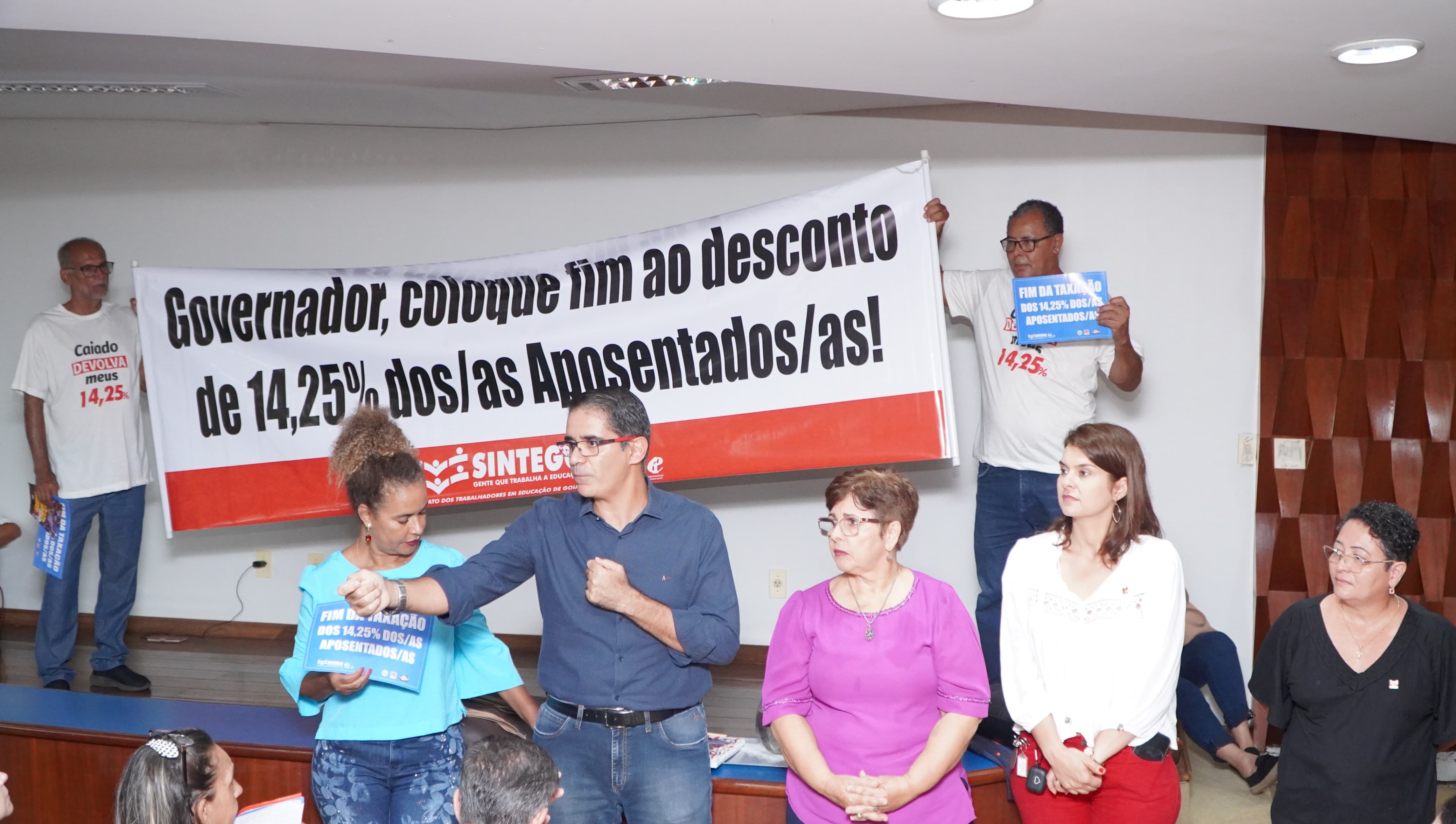Em ato público realizada na manhã dessa quarta-feira, 24, com a presença de servidores aposentados de todo o Estado, a deputada Bia de Lima (PT), que também preside o Sindicato dos Trabalhadores em Educação de Goiás (Sintego), cobrou novamente o fim da taxação de 14,25% do grupo para o fundo previdenciário.