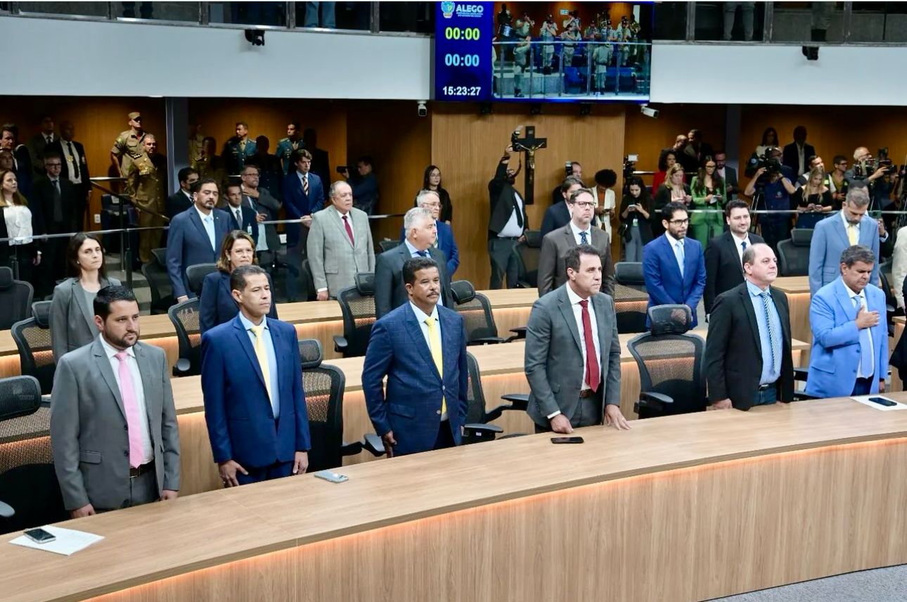 A Assembleia Legislativa do Estado de Goiás (Alego) retomou as atividades nesta quinta-feira, 15, marcando o início do segundo ano de trabalhos da 20ª Legislatura. A sessão solene de instalação da 2ª sessão legislativa ordinária contou com a presença do governador Ronaldo Caiado, que fez a leitura da mensagem governamental anual aos parlamentares. Além disso, o deputado Paulo Cezar Martins discursou pela oposição, enquanto o deputado Renato de Castro falou pela base do Governo.