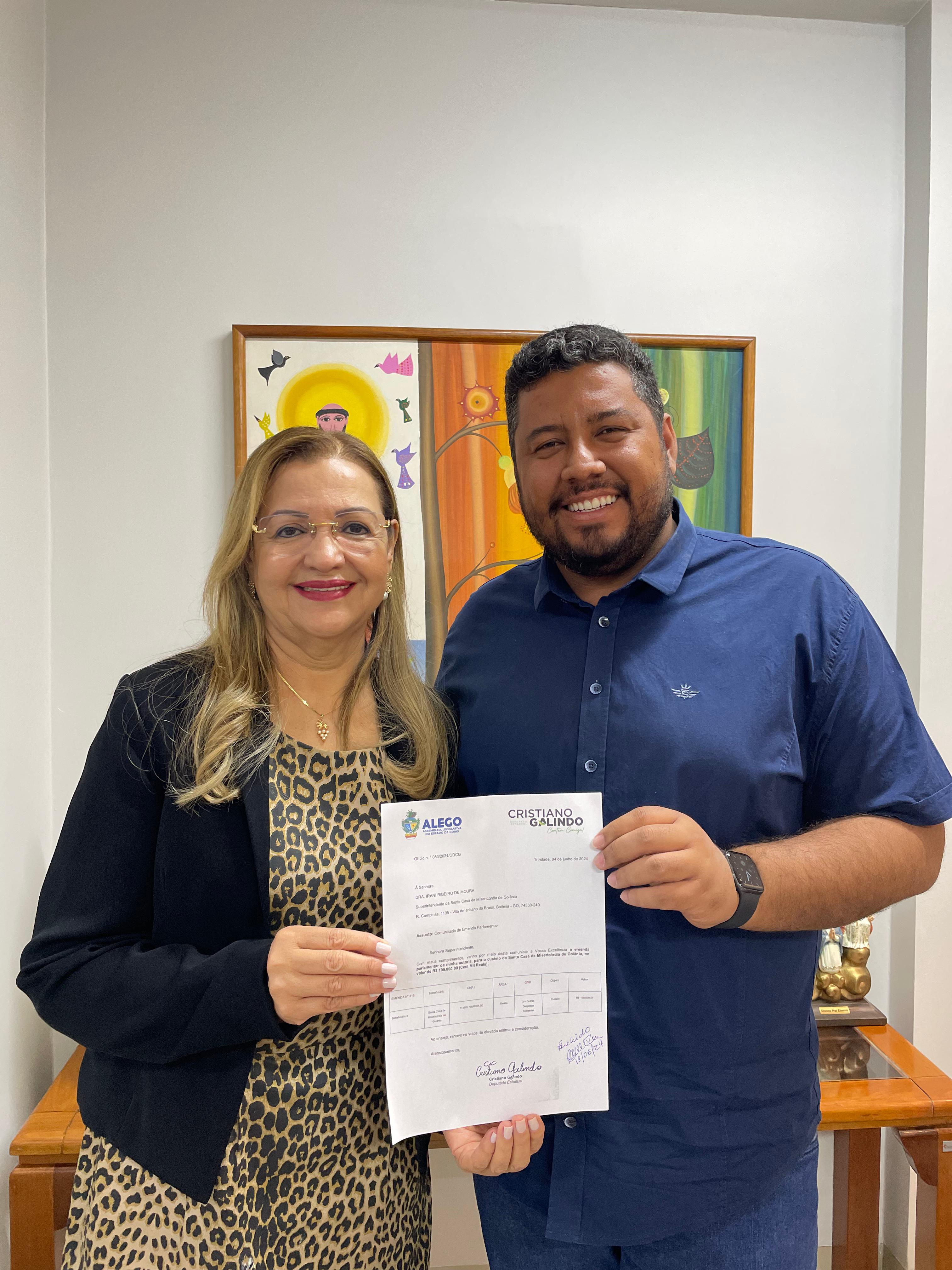 O deputado estadual Cristiano Galindo (Solidariedade) anunciou a aplicação de R$ 100 mil na Santa Casa de Misericórdia de Goiânia na última terça-feira, 18, durante visita à unidade de saúde. A destinação foi resposta às necessidades do hospital que, conforme a superintendente Irani Ribeiro, tem enfrentado muitos desafios financeiros para se manter ao longo dos anos.