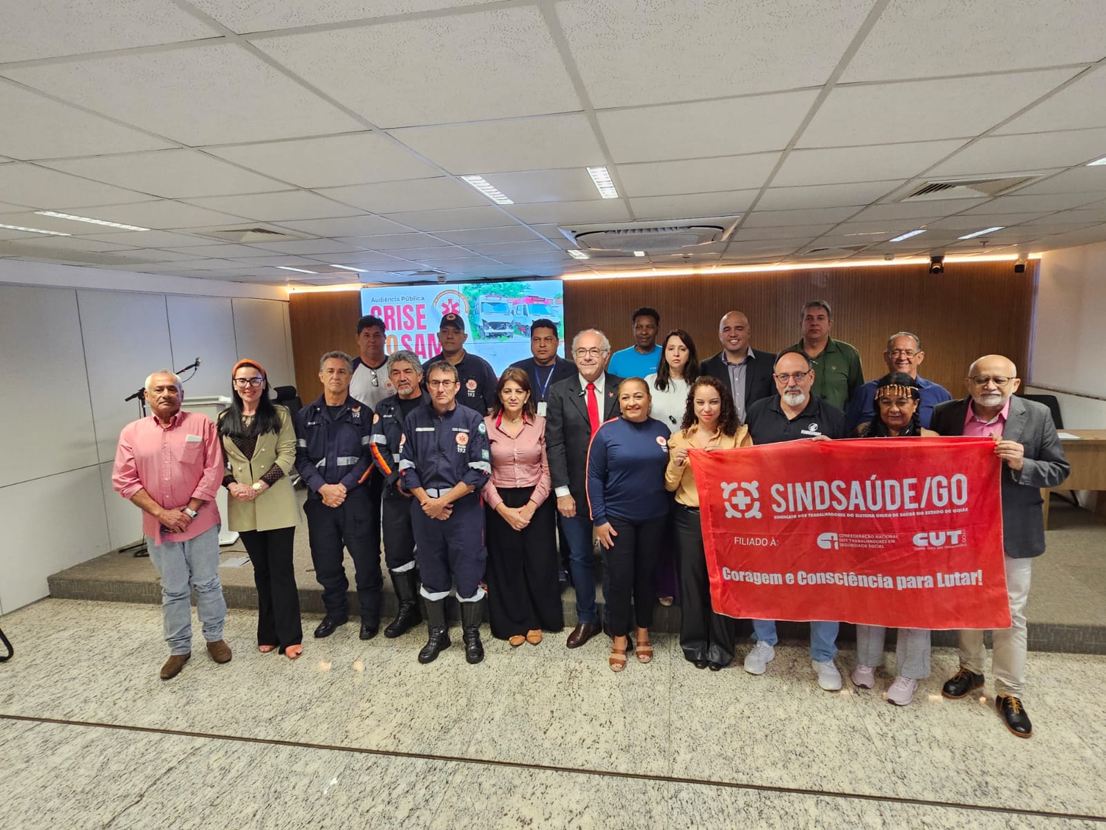 Sob a presidência do deputado, a mesa foi composta pela presidente do Sindicato dos Trabalhadores do Sistema Único de Saúde de Goiás (Sindsaúde), Luzinéia Vieira; diretor do Departamento Nacional de Auditoria do SUS (Denasus), Alexandre Alves (remota); presidente da Associação dos Servidores do Samu, Jeferson Brito; presidente do Sindicato dos Médicos no Estado de Goiás (Simego), Franscine Leão; chefe da Seção de Auditorias do SUS em Goiás, Kleber Sandro Temponi (remota); pela representante do Fórum Goiano de Mulheres, professora Ana Rita; e pela diretora do Sindicato dos Enfermeiros do Estado de Goiás (Sieg), Dionne Hallyson Silva.