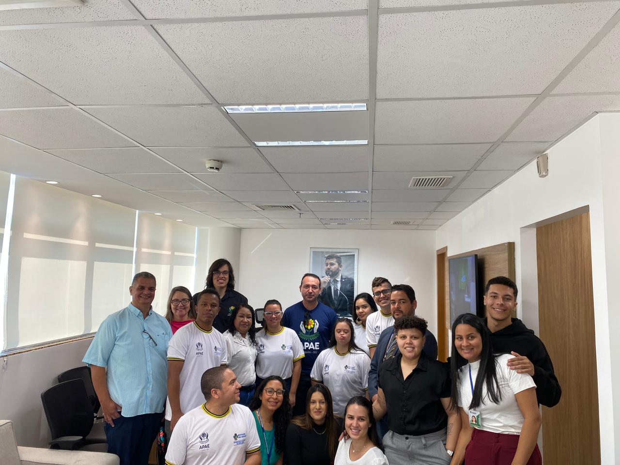 Uma comitiva de alunos da Associação dos Pais e Amigos dos Excepcionais (Apae) de Anápolis esteve, na manhã da última terça-feira, 27, na Assembleia Legislativa do Estado de Goiás (Alego). Acompanhados do presidente da instituição, Vanderley Cezário de Lima, os estudantes foram recebidos em café da manhã e depois conheceram a estrutura organizacional e o funcionamento do Poder Legislativo goiano.
