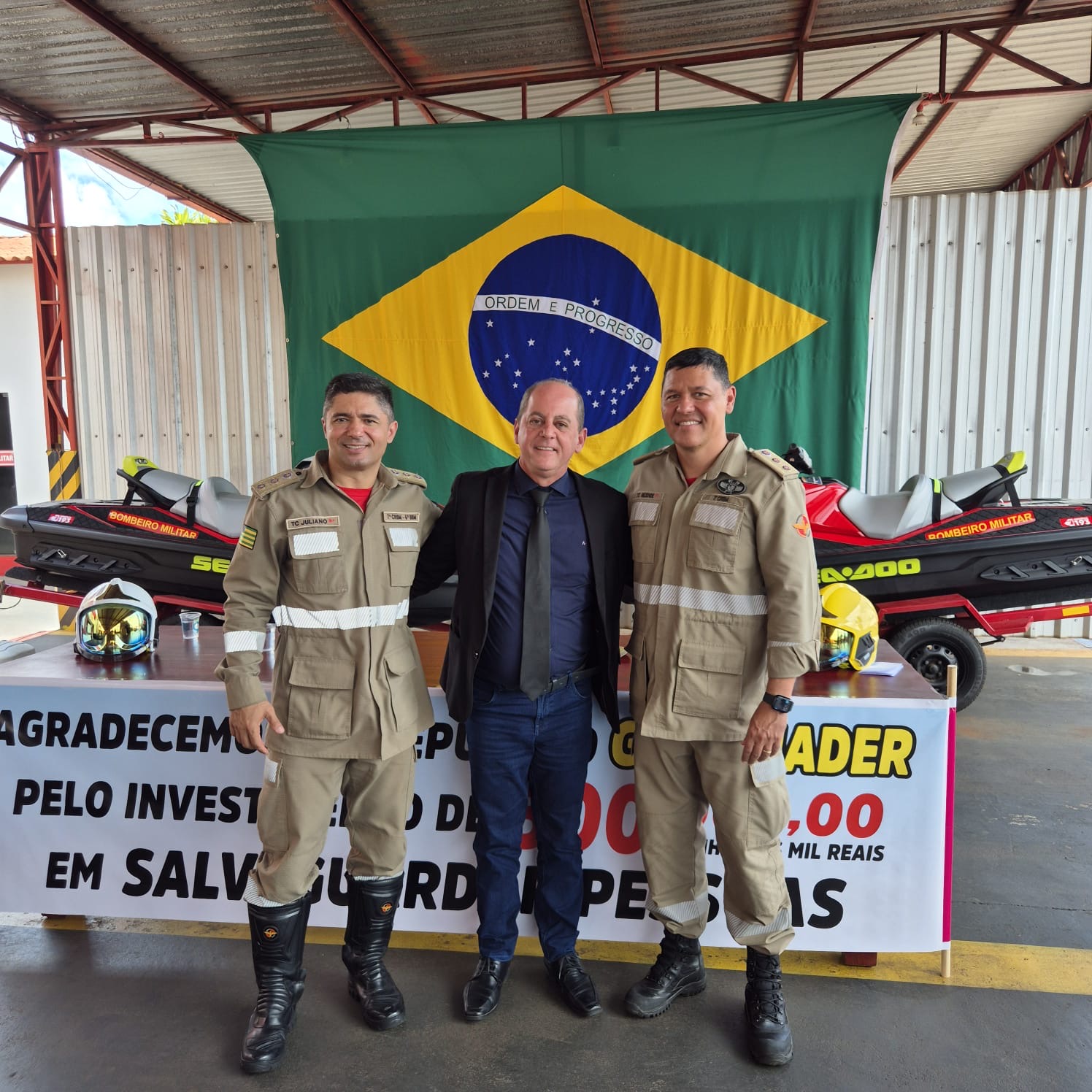 Na manhã desta sexta-feira, 22, o deputado Gugu Nader (Avante) participou da solenidade de entrega de três embarcações do tipo motoaquáticas ao 6º Batalhão do Corpo de Bombeiros Militar do Estado de Goiás, em Itumbiara. As embarcações foram adquiridas graças a uma emenda parlamentar destinada pelo próprio deputado, que viabilizou o importante reforço operacional para a unidade, reiterando sua responsabilidade com a segurança pública e o bem-estar da população itumbiarense.