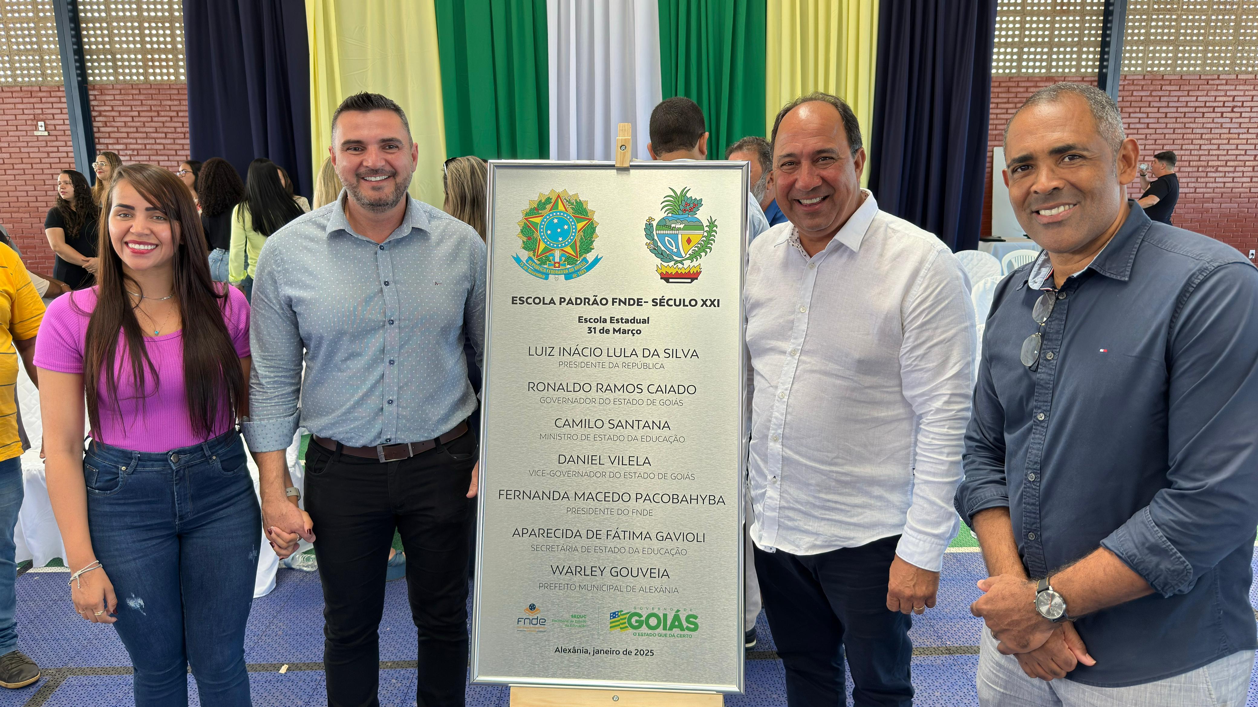 A solenidade reuniu lideranças como o vice-governador Daniel Vilela, a secretária de Educação, Fátima Gavioli, o prefeito Warley Gouveia e o deputado federal Adriano do Baldy, que somaram forças para viabilizar o projeto.