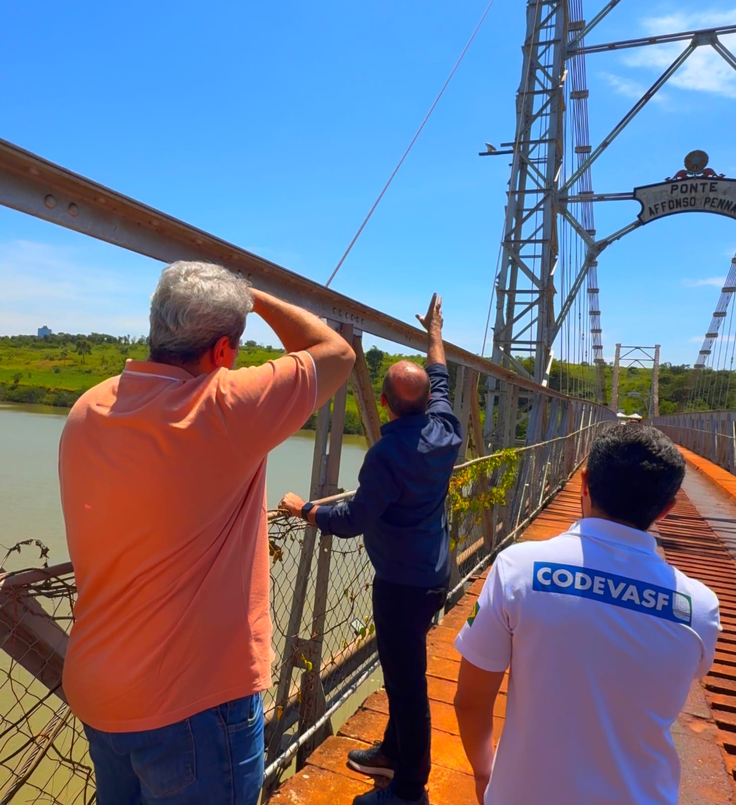 Durante a visita, estiveram presentes Abelardo Vaz Filho, superintendente regional da Codevasf Goiás, além de técnicos do órgão. Eles avaliaram de perto as condições da ponte e discutiram as possíveis medidas para sua recuperação.