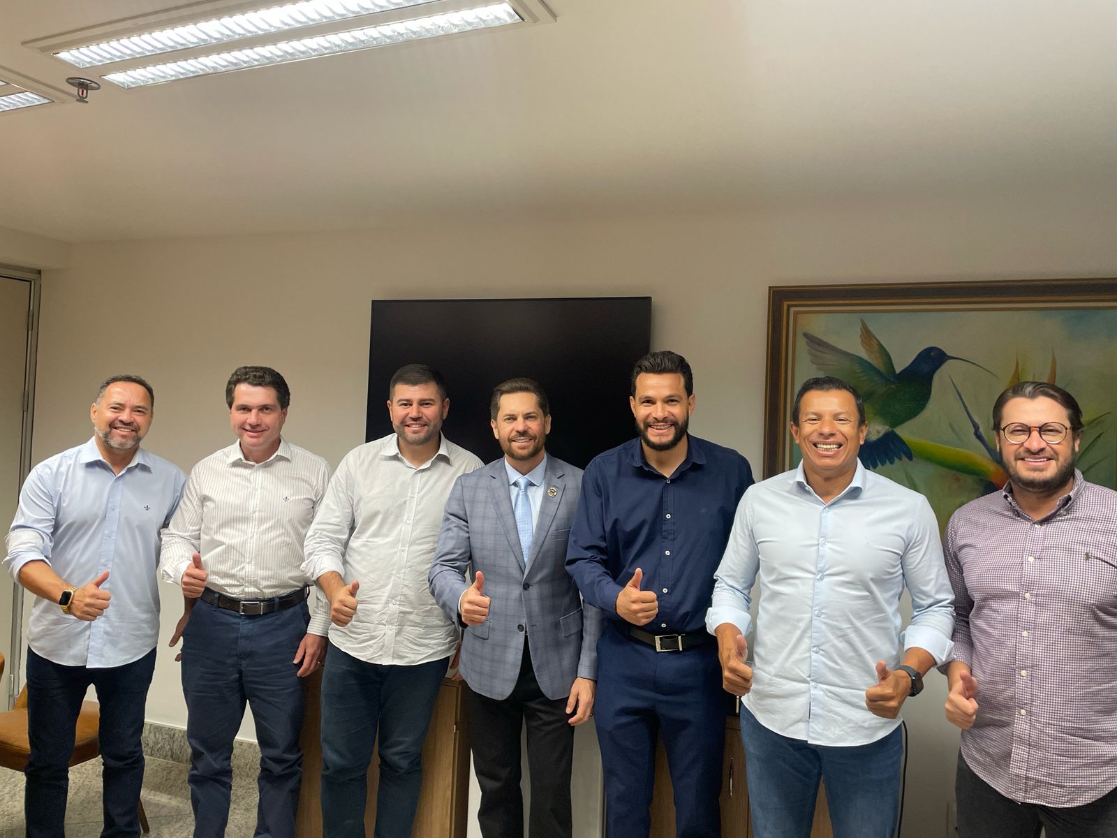 Amilton Filho também recebeu a visita do prefeito de Cristalina, Luis Oáavio Biazzoto Massa (PL), e de três vereadores da cidade, Valter Tomaz (Podemos), Juninho do Belvedere (PP) e Tenente Vasco (PL). A visita de cortesia reforçou a já sólida parceria entre o deputado, o Executivo e o Legislativo municipais, já que desde o seu primeiro mandato o deputado tem carreado recursos via emendas e demais benefícios para Cristalina.