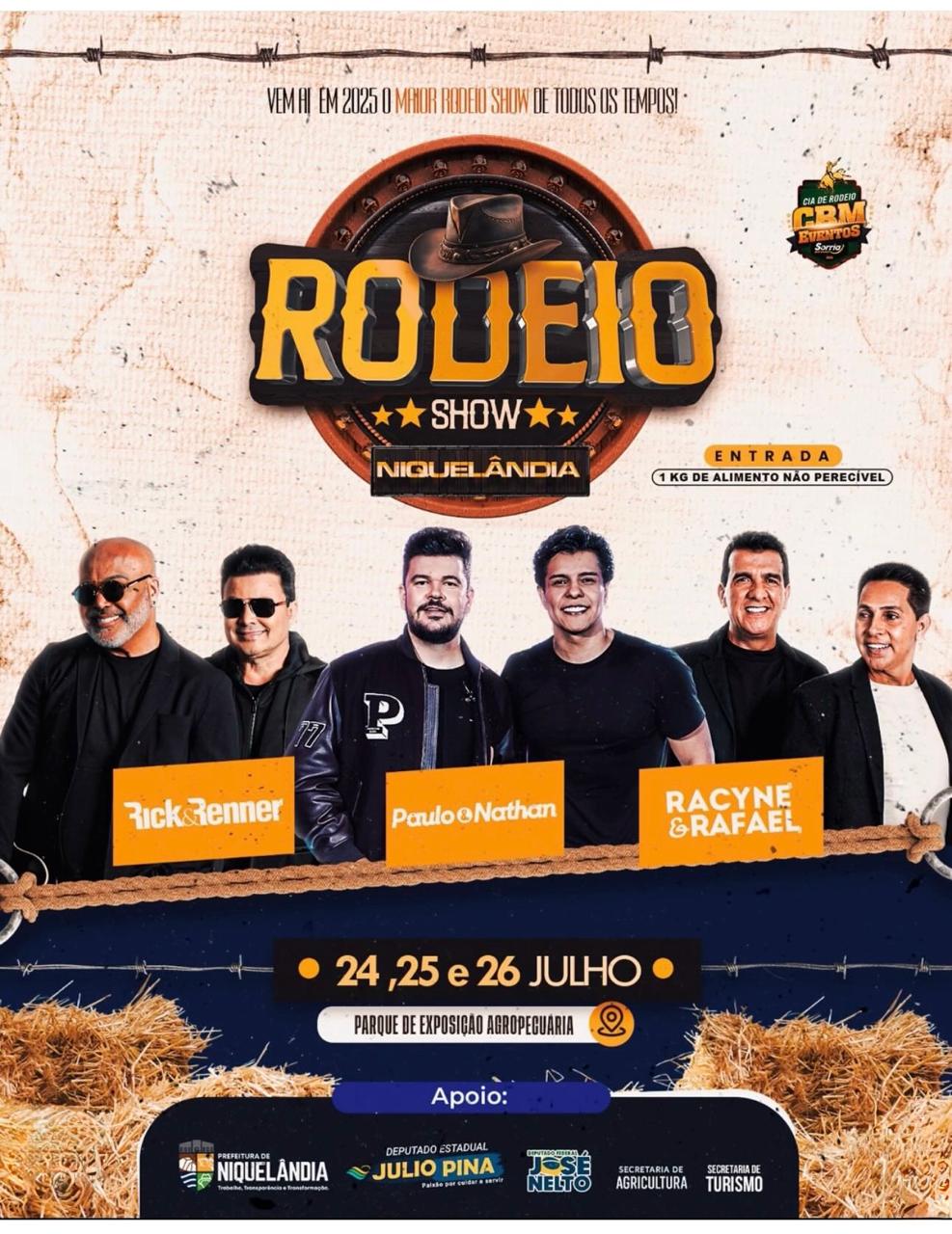O tradicional Rodeio Show de Niquelândia, que será realizado entre os dias 24 e 26 de julho no Parque de Exposições Agropecuárias, promete ir além da diversão. Com apoio do deputado Julio Pina (Solidariedade), o evento terá um forte apelo social: todos os alimentos arrecadados na entrada serão destinados a famílias em situação de vulnerabilidade no município.