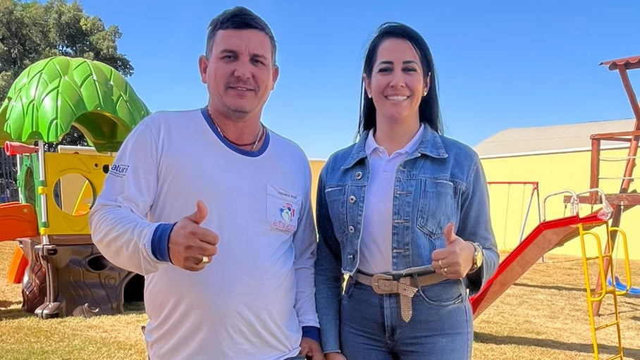 A vice-prefeita de Caturaí, Silmara Ribeiro (PP), e o ex-vereador Márcio da Saúde agradeceram ao deputado estadual Amilton Filho (MDB) pela instalação do parque infantil no Centro Municipal de Educação Infantil (CMEI) Carolina da Luz.