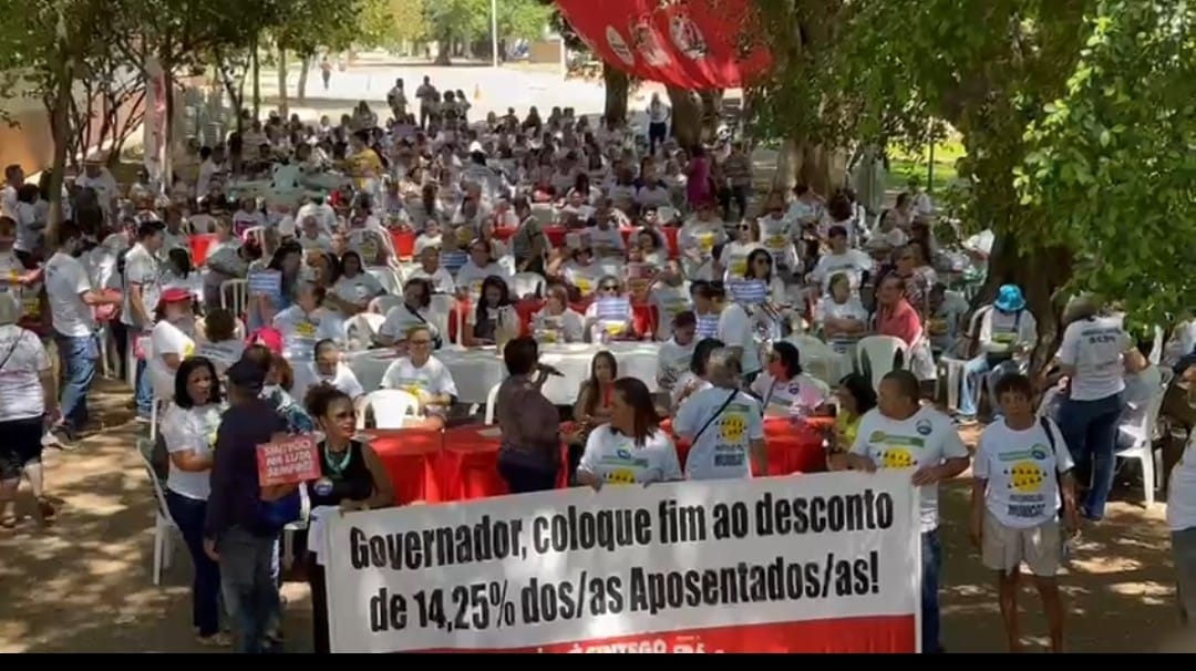 A deputada estadual Bia de Lima (PT), que também preside o Sindicato dos Trabalhadores em Educação de Goiás (Sintego), liderou um ato na manhã desta sexta-feira, 3, no Palácio das Esmeraldas, sede oficial do Governo de Goiás. Reunida com aposentados dos quatro cantos do Estado, a parlamentar fez um apelo ao govenador Ronaldo Caiado (UB) para que acabe, de uma vez por todas, com o desconto de 14,25% da categoria.