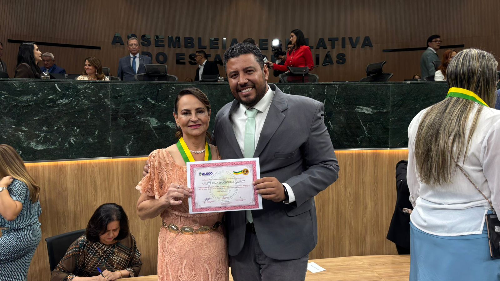 A cerimônia reuniu lideranças políticas, prefeitos, vereadores, representantes do Judiciário e de diversas instituições. A comenda leva o nome de Berenice Teixeira Artiaga, primeira deputada estadual da história de Goiás, que abriu caminho para a participação feminina na política goiana.