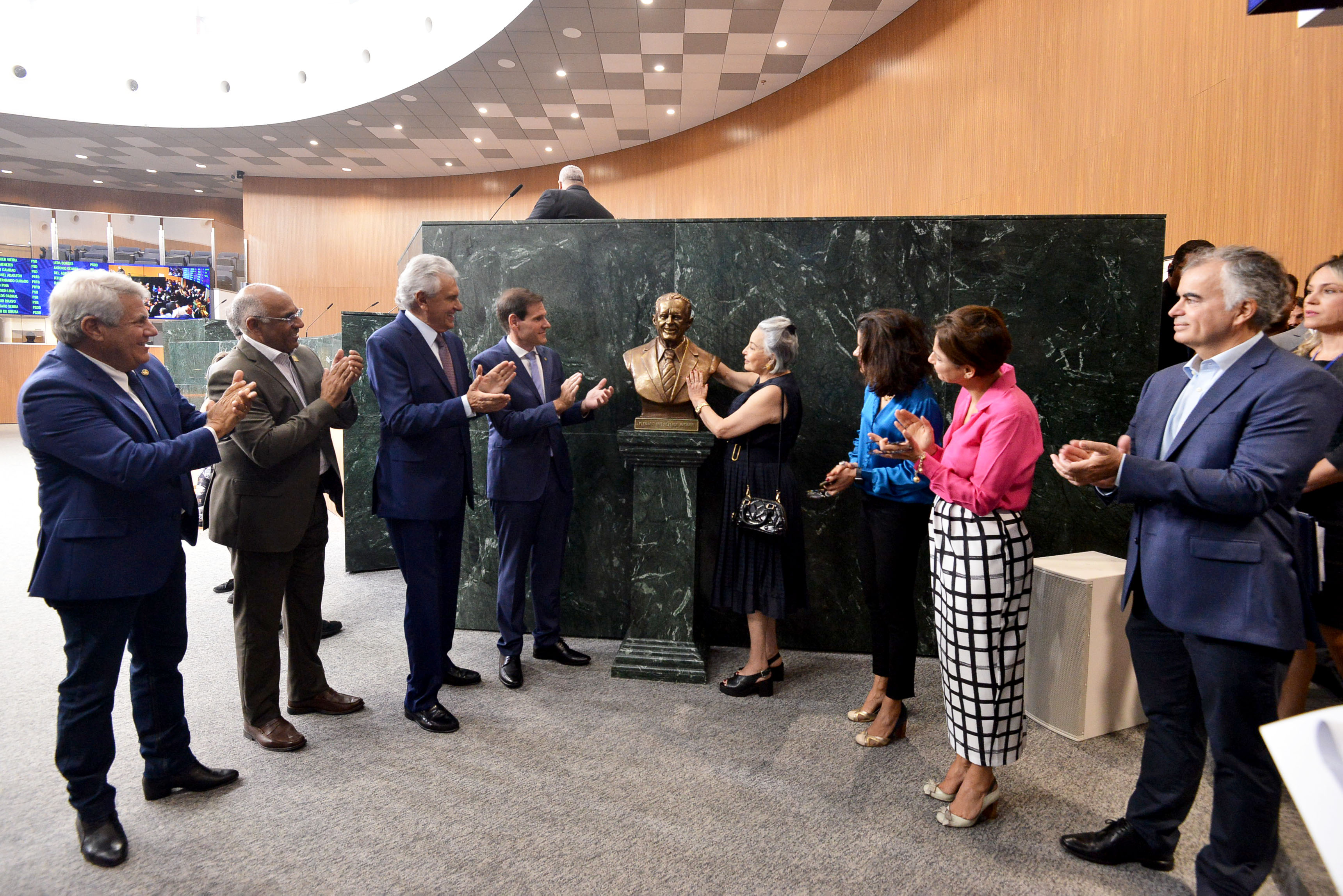 Última visita de Dona Iris à Assembleia Legislativa foi durante inauguração do busto de Iris Rezende, que deu nome ao plenário