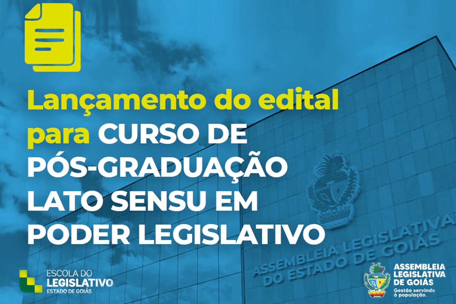 A Escola do Legislativo, da Assembleia Legislativa do Estado de Goiás (Alego), publicou edital de seleção (clique aqui para ler a íntegra dele) para o preenchimento de vagas para o curso de pós-graduação latu sensu (especialização) em Poder Legislativo e Direito Parlamentar.