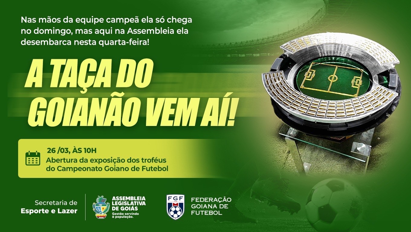 Essa exposição é resultado de uma parceria entre a Diretoria de Cultura, Esporte e Lazer da Assembleia e Federação Goiana de Futebol (FGF). A cerimônia de exibição do troféu contará com a presença do presidente da Casa, deputado Bruno Peixoto (UB); do presidente da Federação Goiana de Futebol, Ronei Freitas; do secretário Municipal de Esporte e Lazer de Goiânia, Luiz Bittes; do secretário de Esporte e Lazer da Alego, Jucelino Peixoto; e também deverá contar com a presença do secretário Estadual de Esporte e Lazer, Rudson Guerra e de parlamentares da Casa.