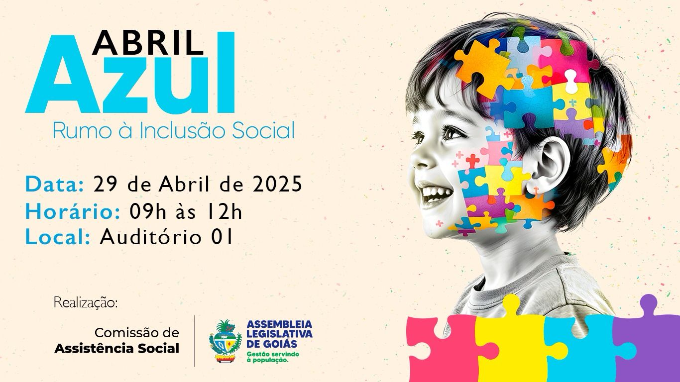 Nesta terça-feira, 29, às 9 horas, o auditório 01 da Assembleia Legislativa será palco do evento "Abril Azul – Rumo à Inclusão Social". A iniciativa, promovida pela Comissão de Assistência Social, sob a presidência da deputada Vivian Naves (PP), tem como principal objetivo fomentar a conscientização acerca do transtorno do espectro autista (TEA).