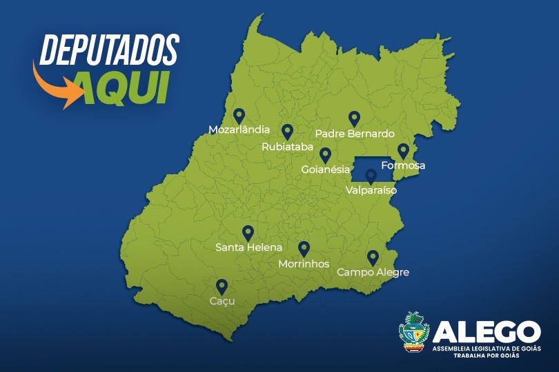 Entre fevereiro e junho de 2025, o Programa Deputados Aqui, da Assembleia Legislativa do Estado de Goiás (Alego), percorreu dez municípios goianos e realizou mais de 90 mil atendimentos diretos à população. As edições aconteceram em Morrinhos, Rubiataba, Goianésia, Caçu, Santa Helena, Formosa, Padre Bernardo, Campo Alegre de Goiás, Valparaíso e Mozarlândia. A iniciativa levou serviços gratuitos de saúde, cidadania, assistência social, empreendedorismo e cultura por meio de uma estrutura itinerante que se tornou referência no estado.